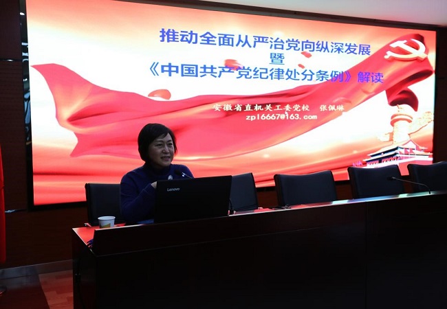 此次培訓(xùn)雖然時(shí)間短,但是課程內(nèi)容安排豐富、緊湊,省直工委講師圍繞基層黨組織標(biāo)準(zhǔn)化建設(shè),提升支部建設(shè)質(zhì)量水平,根據(jù)基層支部日常工作中發(fā)現(xiàn)的問題、支部建設(shè)需要解決的困難,重點(diǎn)講解了黨組織選舉、黨員發(fā)展、組織生活開展、黨費(fèi)收繳、使用和管理等內(nèi)容,為參會人員系統(tǒng)梳理了支部建設(shè)的各項(xiàng)基礎(chǔ)性工作。省委黨校講師以《推動全面從嚴(yán)治黨向縱深發(fā)展--淺析新修訂條例》為主題,從新修訂《條例》的重大意義、主要內(nèi)容、宣貫落實(shí)等方面,結(jié)合具體案例進(jìn)行了深入的分析和解讀。