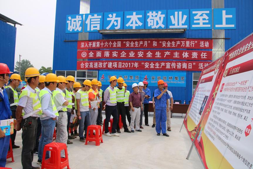 合安高速改擴(kuò)建項(xiàng)目通過安全知識(shí)講座、安全宣傳資料發(fā)放、安全宣傳展板展示、安全知識(shí)咨詢講解、安全體驗(yàn)區(qū)體驗(yàn)等方式,調(diào)動(dòng)一線工人對(duì)安全生產(chǎn)的關(guān)注。