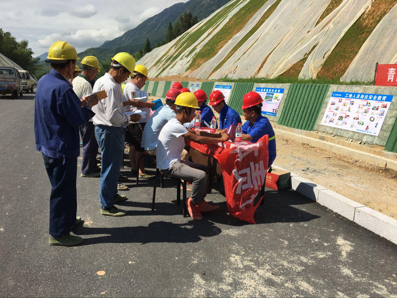蕪合高速公路改擴(kuò)建三標(biāo)發(fā)放安全宣傳資料,強(qiáng)化一線工人安全意識(shí),解答一線工人提出的有關(guān)安全問題。