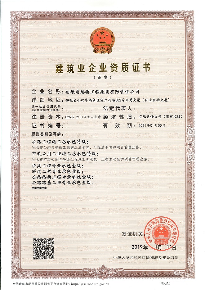 繼2017年公司通過市政施工總承包特級(jí)、市政設(shè)計(jì)行業(yè)甲級(jí)資質(zhì)后,今年4月,公司又成功取得公路施工總承包特級(jí)資質(zhì)以及公路設(shè)計(jì)行業(yè)甲級(jí)資質(zhì),成為安徽省內(nèi)首家擁有市政、公路“雙特雙甲”資質(zhì)企業(yè)。近期,公司又新增環(huán)保一級(jí)、起重設(shè)備安裝一級(jí)、地基基礎(chǔ)工程一級(jí)、港口與航道工程二級(jí)、機(jī)電工程二級(jí)、水利水電工程二級(jí)資質(zhì)。西藏新瑞公司獲批水利水電工程三級(jí)資質(zhì),檢測(cè)公司資質(zhì)升甲工作順利推進(jìn),企業(yè)資質(zhì)進(jìn)一步豐富。