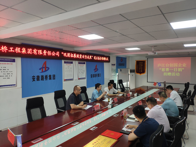 捐贈儀式上,王升副會長向與會人員介紹了此次募捐活動的由來及目的,詳細(xì)講述了廬江縣實(shí)施“一米陽光”助殘、“薪火相傳”助學(xué)、“鄰里守望”互助等三大社會幫扶工程的初衷和使命,并對公司的捐贈善舉表示感謝。隨后,干戈副書記與王升副會長簽訂關(guān)于設(shè)立“安徽路橋集團(tuán)鞏固拓展脫貧攻堅(jiān)成果三大工程基金”的協(xié)議,廬江臺創(chuàng)園管委會工會主席張波頒發(fā)捐贈證書。