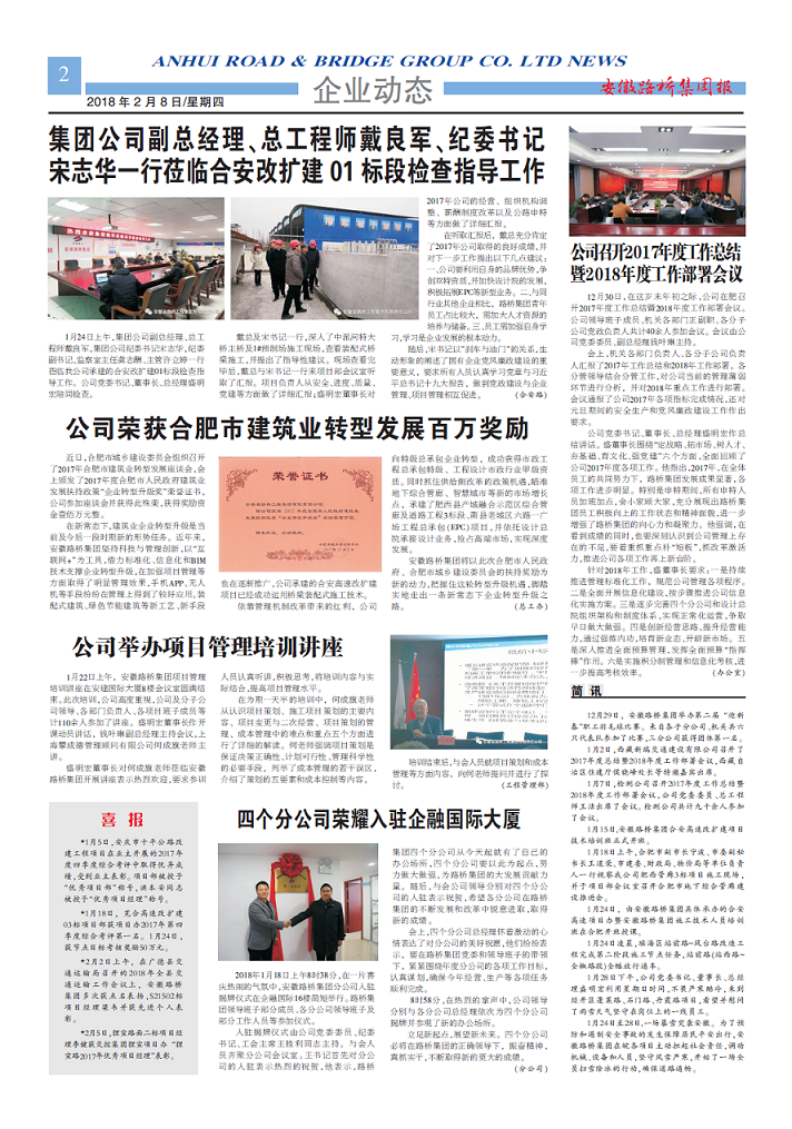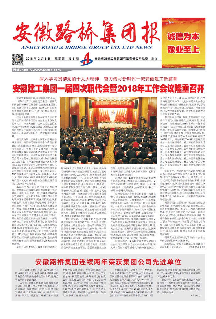 來(lái)源:安徽省路橋工程集團(tuán)有限責(zé)任公司 發(fā)布時(shí)間:2018-02-08 瀏覽次數(shù):37060