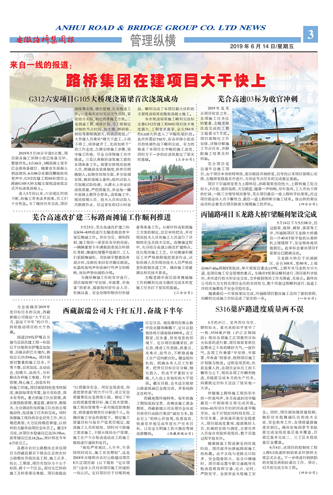 來(lái)源:安徽省路橋工程集團(tuán)有限責(zé)任公司 發(fā)布時(shí)間:2019-06-14 瀏覽次數(shù):146424