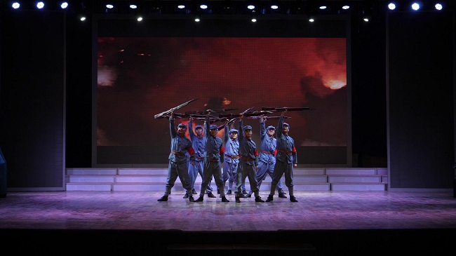 本次藝術(shù)團(tuán)課的舞蹈《出征》,其創(chuàng)作背景是以六安市金寨縣送郎當(dāng)紅軍為故事線索,講述了革命時(shí)期為了支援抗戰(zhàn),11位年輕的戰(zhàn)士們遠(yuǎn)離家鄉(xiāng)和親人,只身奔赴戰(zhàn)場(chǎng),最終壯烈犧牲的英勇事跡。揭示了烽火歲月,金寨人民以大無畏的犧牲精神,為中國革命事業(yè)建立了彪炳史冊(cè)的功勛。排練期間,所有參演人員克服疫情的影響,在安排好自身工作的前提下,不畏挑戰(zhàn)、不說苦累,在連續(xù)高溫的情況下,揮汗如雨、反復(fù)打磨,即使臺(tái)下沒有觀眾,他們的熱情也不減絲毫,力爭(zhēng)每個(gè)動(dòng)作都能達(dá)到最佳效果。僅僅半個(gè)月的時(shí)間就高質(zhì)量地完成了整個(gè)節(jié)目的排演及錄制工作,比預(yù)計(jì)時(shí)間整整提前一個(gè)月,充分彰顯了路橋集團(tuán)團(tuán)員青年勇于奮斗、敢于爭(zhēng)先的精神。