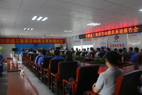 6月15日,安徽建工集團勞動模范事跡報告團來到安徽路橋集團合安高速改擴建01標(biāo)項目部,為項目員工作集團勞模先進事跡報告。集團工會徐曉光主席,公司黨委委員、紀(jì)委書記、工會主席王勝利,財務(wù)總監(jiān)鄧?yán)俚瘸鱿瘓蟾鏁?。公司機關(guān)及項目部共計50余人參加此次報告會。