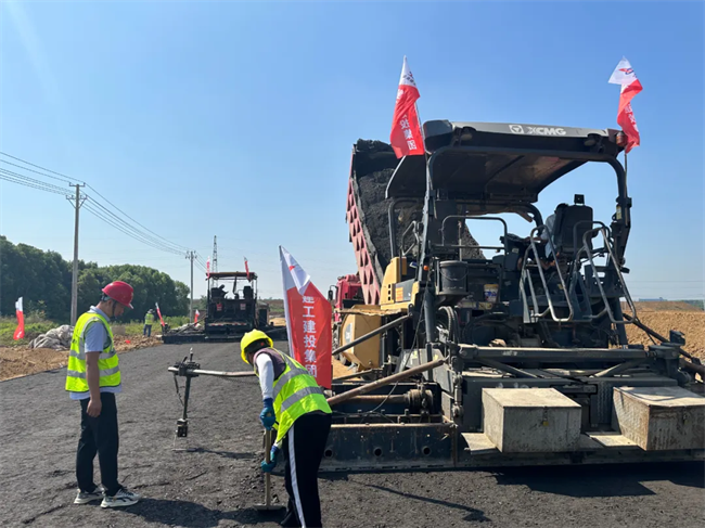 為確保黃店路現(xiàn)場水穩(wěn)攤鋪施工的進度和質(zhì)量,一分公司官亭項目施工現(xiàn)場機器轟鳴,人聲鼎沸,一派繁忙景象。建設(shè)者們利用周末晴好天氣,加班加點搶抓施工進度。同時,項目嚴格把控安全質(zhì)量管理,做到人人身上有任務(wù),個個肩上有責(zé)任。目前,項目已完成水穩(wěn)攤鋪500米。