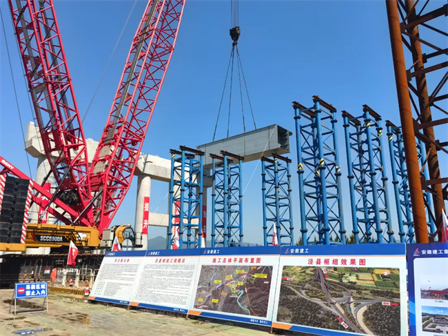 涇青一分部項目確保工程質(zhì)量和進度同步優(yōu)化,有序推進工程建設(shè)。在鋼箱梁架和樞紐E匝道橋9#墩下系梁澆筑施工現(xiàn)場,現(xiàn)場管理人員嚴守安全紅線,把握施工技術(shù)要點,全程盯控現(xiàn)場,確保施工進度與質(zhì)量的雙重保障。