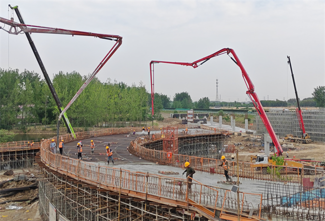 五蒙高速05標(biāo)項(xiàng)目現(xiàn)場(chǎng),匝道橋涉水現(xiàn)澆梁施工正如火如荼地進(jìn)行,現(xiàn)已全部完成樞紐下部結(jié)構(gòu)施工階段,正式進(jìn)入主線(xiàn)橋面系施工階段?,F(xiàn)場(chǎng)時(shí)間仿佛被按下了快進(jìn)鍵,機(jī)器轟鳴聲此起彼伏,各類(lèi)工程車(chē)輛往來(lái)穿梭,工人們揮汗如雨,分工明確,在各自的崗位上緊張而有序地忙碌著,大家都在以只爭(zhēng)朝夕的勁頭和分秒必爭(zhēng)的行動(dòng),齊心協(xié)力、全力以赴推進(jìn)工程進(jìn)度。