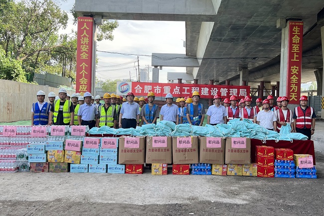 2023年7月14日下午,合肥市重點工程建設(shè)管理局局長張剛一行赴建工建投集團金寨路高架橋綁寬項目施工現(xiàn)場開展“夏日送清涼”慰問活動,建工建投集團黨委書記、董事長任杰,黨委委員、副總經(jīng)理王秋華等參加慰問。