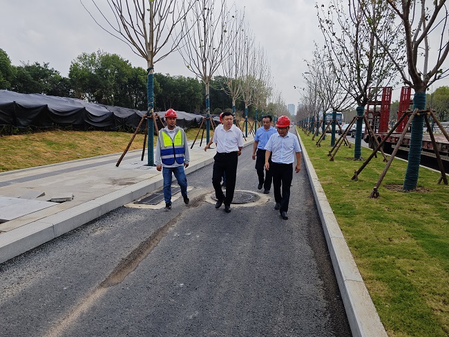 章浩一行深入青海路項目施工現(xiàn)場,實地了解項目收尾工作進展情況,重點關(guān)注項目沿線綠化施工,對項目苗木施工、樹池蓋板施工等表示高度認可。