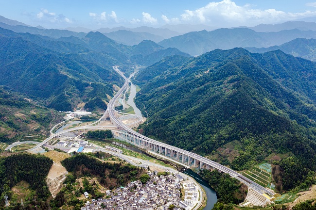 由安徽建工建設投資集團有限公司承建的黃千高速02標段,于2020年8月25日開工,橋隧比高達94%,是目前省內高速公路項目中橋隧比最高、施工難度最大的項目。其中,寬翼展花瓶墩工藝為省內高速公路橋梁建設首次應用;傍山狹窄走廊帶,采用裝配式懸挑路基結構更為全國首創(chuàng);方村隧道千島湖端雙線穿越大型巖堆體不良地質,施工難度國內罕見。