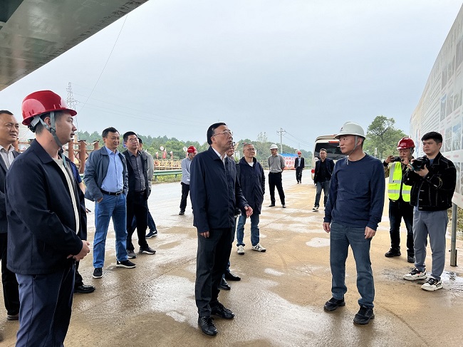施懷中一行在項(xiàng)目K4鋼箱梁頂推現(xiàn)場(chǎng),與項(xiàng)目負(fù)責(zé)人進(jìn)行了深入交流,詳細(xì)了解項(xiàng)目進(jìn)展、施工難點(diǎn)以及后續(xù)工作計(jì)劃,對(duì)項(xiàng)目自開工以來(lái),充分發(fā)揮了專業(yè)優(yōu)勢(shì),克服了征收拆遷、氣候多變等困難,努力確保施工進(jìn)度穩(wěn)步推進(jìn)所取得的階段性成果表示充分肯定。