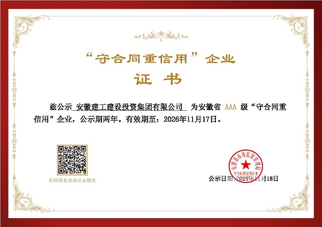 每一份榮譽都是奔赴美好的里程碑。下一步,建工建投集團繼續(xù)秉承“誠信為本 敬業(yè)至上”的企業(yè)核心價值觀,注重信用體系建設(shè),完善合同管理流程和制度,不斷提升企業(yè)經(jīng)營管理水平,樹立守合同重信用企業(yè)標桿,以更多精品、優(yōu)質(zhì)工程,為安徽經(jīng)濟建設(shè)作出更大的貢獻。
