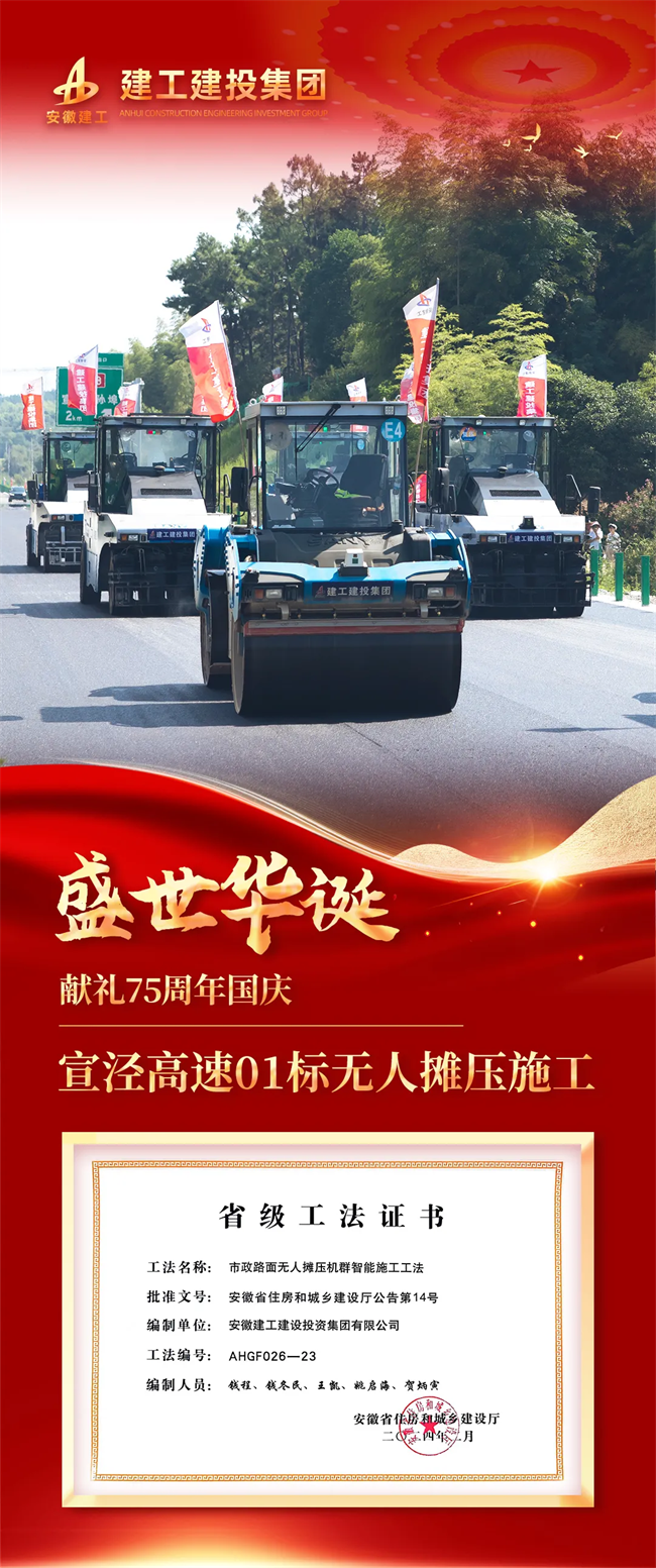 3月,研發(fā)總結的《市政路面無人攤壓機群智能施工工法》獲評安徽省優(yōu)秀省級工法。5月-8月,由建工建投集團主導的無人攤壓機群智能施工技術率先實現(xiàn)在省內(nèi)高速公路施工大規(guī)模應用,并組織全省交通骨干企業(yè)開展觀摩交流,受到省行業(yè)主管部門關注和各大主流媒體宣傳。