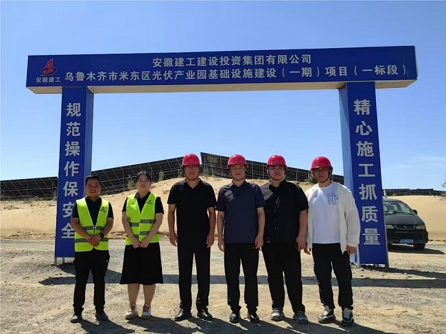 七月似火的驕陽炙烤著大地,沙漠戈壁地表溫度飆升到極高。7月26日,公司黨委副書記、工會主席干戈深入新疆維吾爾自治區(qū)古爾班通古特沙漠地帶,慰問堅守在烏魯木齊光伏產(chǎn)業(yè)園基礎設施建設工程總承包項目的一線員工,為奮戰(zhàn)在43攝氏度高溫下作業(yè)的職工送清涼、道辛苦、鼓干勁。