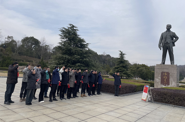 上午,黨員同志們集中參觀了陳獨秀生平事跡陳列館,通過觀史物、聽解說,重溫紅色革命的波瀾壯闊,感受先輩的清正平直、永垂不朽,體悟革命歲月中的偉大精神力量。參觀結(jié)束后,全體黨員來到陳獨秀墓冢前鞠躬默哀,表達對陳獨秀先生的敬仰和懷念之情。