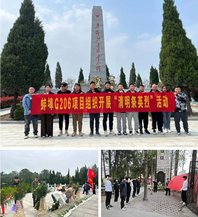 合周高速潁臨段項(xiàng)目、阜淮高速項(xiàng)目、合廬項(xiàng)目、蚌埠G206項(xiàng)目前往屬地烈士陵園向革命烈士默哀致敬、敬獻(xiàn)鮮花,深切緬懷革命先烈的豐功偉績(jī)。全體團(tuán)青還面向團(tuán)旗重溫入團(tuán)誓詞,堅(jiān)定不忘初心跟黨走的信念。最后,團(tuán)青們繞碑瞻仰,重溫革命歷史,感受革命先烈們的頑強(qiáng)拼搏、視死如歸的精神。
