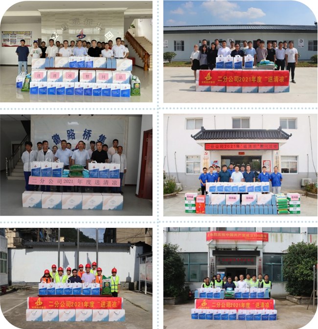 炎炎夏日送清涼,絲絲關(guān)愛入心田。為切實做好職工防暑降溫工作,關(guān)愛一線職工的健康安全。7月27日至8月6日,二分公司開展2021年夏季“送清涼”慰問活動,為所屬各項目送去清涼與關(guān)愛。