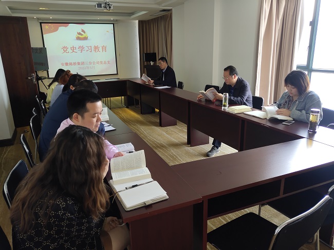 根據(jù)公司黨委安排,三分公司黨總支迅速成立黨史學習教育領(lǐng)導小組,3月22日召開動員部署大會,要求分公司全體黨員充分認識開展黨史學習教育的重大意義,要把黨史學習教育作為重大政治任務和當前頭等大事來抓,堅決做到規(guī)定動作不折不扣,自選動作有聲有色,切實增強開展黨史學習教育的思想自覺、政治自覺、行動自覺。各項目黨支部紛紛召開黨史學習教育動員部署會,加強領(lǐng)導、認真組織,扎實開展黨史學習教育,持續(xù)掀起學習熱潮。