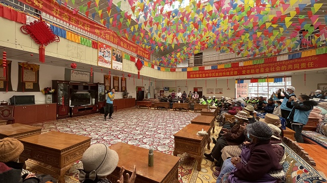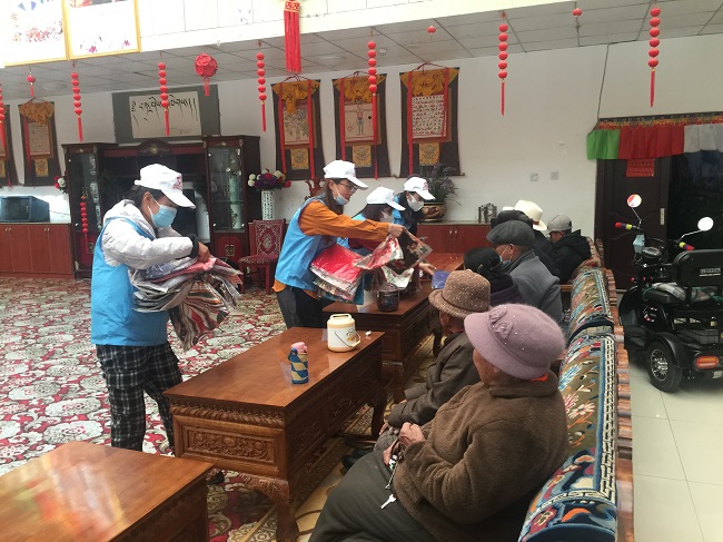 西藏新瑞公司青年志愿者一行來到拉薩市社會福利院,幫助社會福利院開展衛(wèi)生清理、花壇雜草清除等實踐活動,為孤寡老人送上保溫杯、圍巾、棉被、帽子等愛心物資,還為他們包水餃、演節(jié)目,陪老人們一起度過了一個溫馨的節(jié)日。