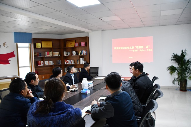 為進(jìn)一步提高政治站位,提升租賃公司黨員隊(duì)伍的思想認(rèn)識(shí),3月1日上午,租賃公司黨支部以“學(xué)黨史、踐初心、開(kāi)新局”為主題,召開(kāi)“新春第一課”學(xué)習(xí)會(huì),分公司領(lǐng)導(dǎo)班子成員、各部門(mén)負(fù)責(zé)人、機(jī)關(guān)全體黨員參加。