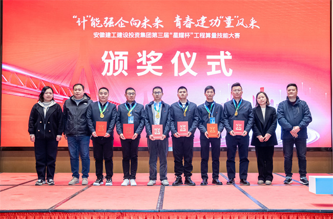 “計(jì)”能強(qiáng)企向未來,青春建功“量”風(fēng)采。12月12日,公司團(tuán)委組織的第三屆“星耀杯”工程算量技能大賽在安徽水利和順大酒店(合肥店)圓滿舉辦,安徽省建設(shè)建材工會(huì)(省住建廳文明辦)四級調(diào)研員邱亮出席開幕儀式并宣布大賽開幕,建工控股黨委組織部(人力資源部)副部長、團(tuán)委書記聶猛蒞臨現(xiàn)場并作指導(dǎo)講話。公司黨委副書記干戈,公司黨委委員、副總經(jīng)理、總工程師陳莘,公司黨委委員、紀(jì)委書記王學(xué)梅,公司黨委委員、副總經(jīng)理王秋華,公司黨委組織部(工會(huì)、團(tuán)委)、成本核算部、市場開發(fā)與投資部相關(guān)負(fù)責(zé)人,所屬各單位黨組織書記,團(tuán)組織負(fù)責(zé)人,一線青年職工等100余人參加活動(dòng)。