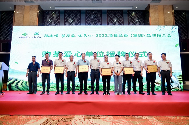 傾情傾力伸援手,消費(fèi)幫扶助振興。7月30日,2022年涇縣蘭香(宣城)品牌推介會(huì)暨“消費(fèi)助茶農(nóng)、幫扶暖人心”購茶愛心單位授牌儀式成功舉行。安徽路橋集團(tuán)工會(huì)主席邵康、五分公司黨支部書記朱大俊代表公司出席本次愛心活動(dòng)。