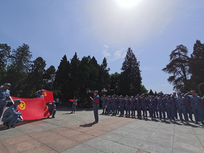 在統(tǒng)一換上紅軍服裝后,青年團員們首先來到金寨紅軍文化廣場。在革命烈士紀念塔下,面對鮮艷的中國共產(chǎn)主義青年團團旗,公司團委書記帶領到場青年團員重溫入團誓詞,牢記初心使命,緬懷革命先烈,傳承五四精神,并對榮獲公司2020年度“五四紅旗團支部”與“優(yōu)秀團員”的集體與個人進行了表彰。