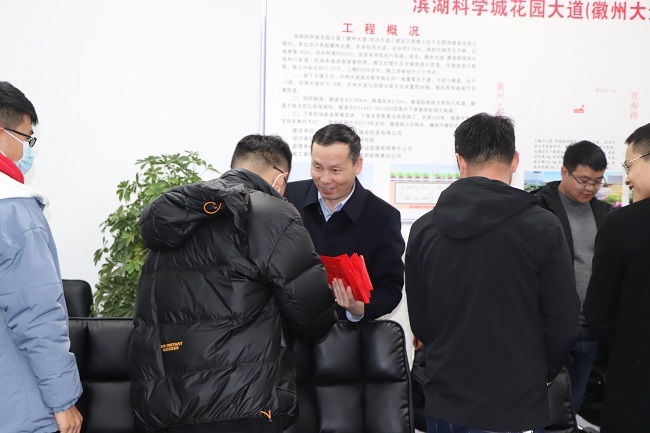 2月12日下午,時(shí)值牛年農(nóng)歷大年初一,公司黨委書記、董事長盛明宏蒞臨花園大道項(xiàng)目,代表公司黨委向留守員工送上新年的祝福和節(jié)日紅包。