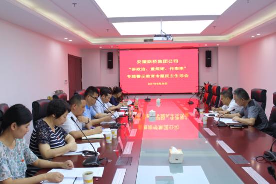 按照集團黨委《關(guān)于在推進“兩學(xué)一做”學(xué)習(xí)教育常態(tài)化制度化中開展“講政治、重規(guī)矩、作表率”專題教育的實施方案》部署要求,安徽路橋集團于8月28日召開公司領(lǐng)導(dǎo)班子“講政治、重規(guī)矩、作表率”專題警示教育專題民主生活會,黨委書記、董事長、總經(jīng)理盛明宏主持會議,公司領(lǐng)導(dǎo)班子全體成員參加會議。建工集團紀(jì)委書記宋志華、紀(jì)委副書記龔志酬到會指導(dǎo)。