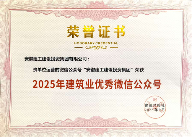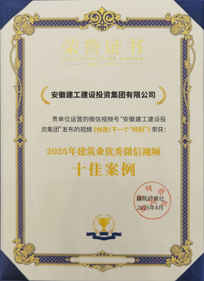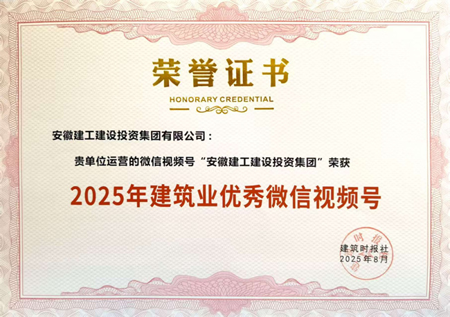 8月7日,由建筑時(shí)報(bào)主辦的“2025年建筑業(yè)微信公眾號(hào)運(yùn)維交流研討會(huì)暨2025年建筑業(yè)優(yōu)秀微信公眾號(hào)、視頻號(hào)發(fā)布會(huì)”在湖南省長(zhǎng)沙市舉辦。公司官方新媒體平臺(tái)表現(xiàn)亮眼:微信公眾號(hào)連續(xù)六年蟬聯(lián)“全國(guó)建筑業(yè)優(yōu)秀微信公眾號(hào)”,視頻號(hào)榮獲“2025年建筑業(yè)優(yōu)秀視頻號(hào)”稱號(hào),2025年元旦發(fā)布的主題視頻《創(chuàng)造!下一個(gè)“特別”》更獲評(píng)“2025年度建筑業(yè)優(yōu)秀微信視頻十佳案例”獎(jiǎng)項(xiàng),為安徽省唯一獲該獎(jiǎng)項(xiàng)的建筑業(yè)企業(yè)。